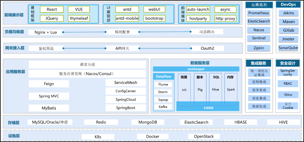 技術架構基于ASP+微服務架構,融合低代碼快速開發、容器云平臺等技術手段,實現快速開發、迭代、部署等開發運維一體化。